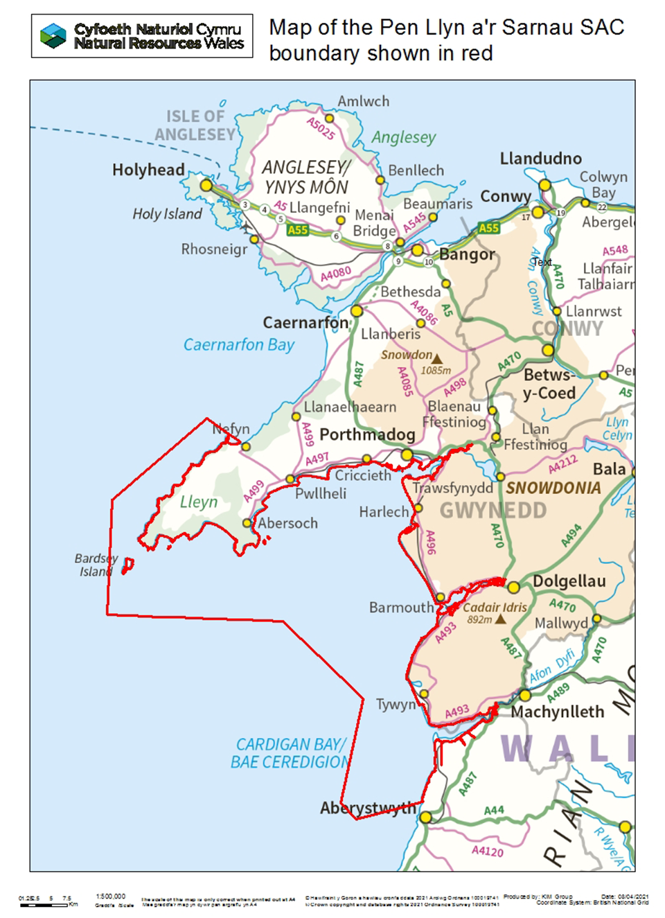 The Pen Llŷn a’r Sarnau SAC is located in northwest Wales. It is one of the largest of the marine SACs in the UK, straddling almost 230km of coastline and covering an area of about 146,023 hectares. The site extends from Penrhyn Nefyn on the north coast of the Llŷn to the mouth of the Afon Clarach (Clarach River) about a mile north of Aberystwyth on the west Wales coast.
