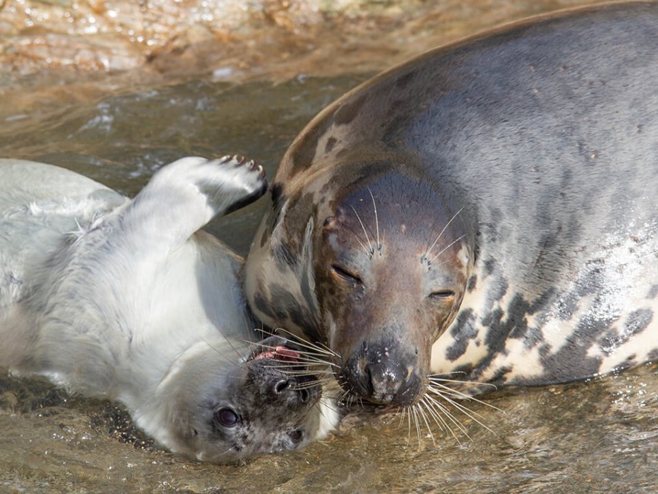 Grey seals are one of the rarest seals in the world. Here in the UK we have nearly half of the world’s population of grey seals! They are very common along our shores and can often be seen sunbathing on the rocks or swimming about in the sea. You’d need good eyesight to see them though as they are the same colour as the rocks! They are very nosey creatures and love nothing more than to see what you are doing. If you are walking along the coast and there is a seal nearby it is very likely that it has seen you and is checking you out!